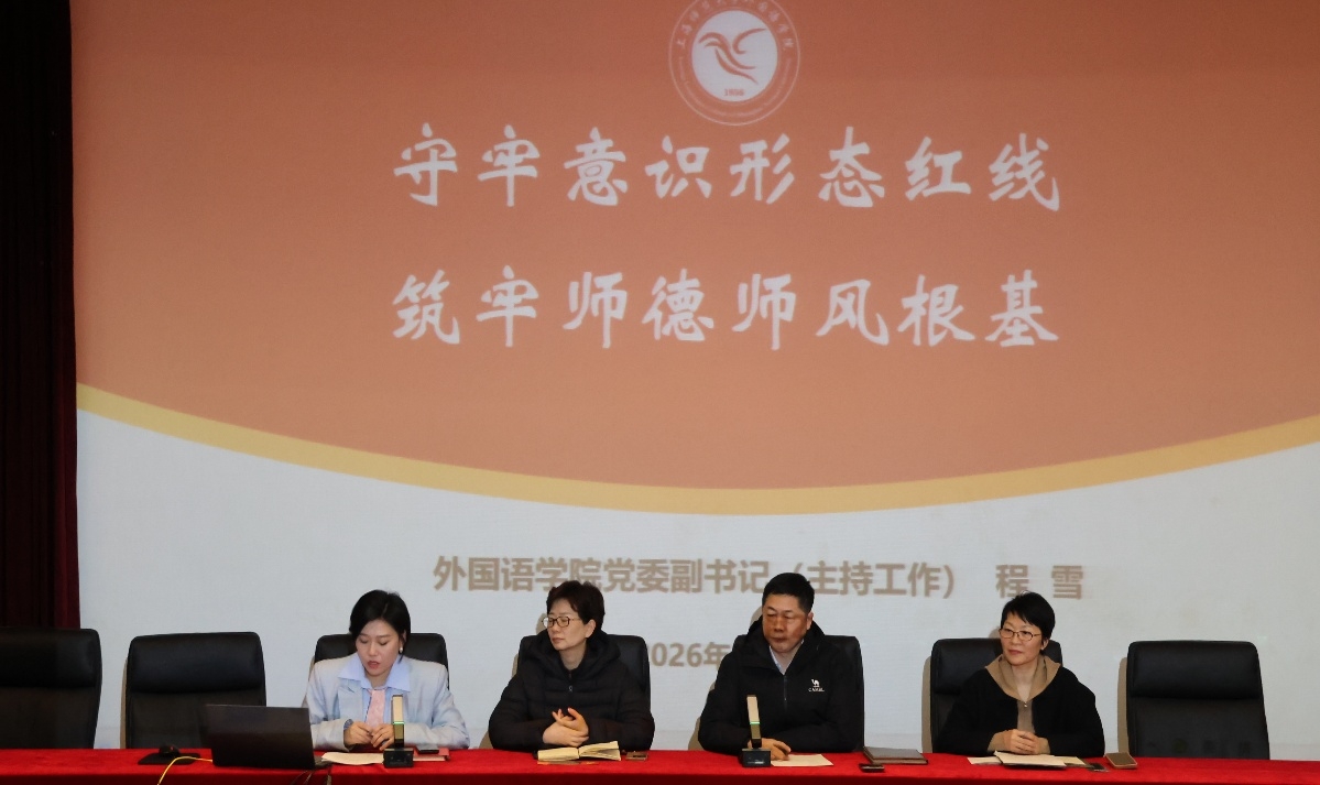 2月27日下午,外国语学院在徐汇校区新大楼110会议室召开全体教职工大会,专题开展师德师风警示教育。本次会议以“守牢意识形态红线,筑牢师德师风根基”为主题,旨在进一步加强新形势下教师思想政治工作和师德师风建设。会议由学院党委副书记(主持工作)程雪主持,学院全体教职工参会。