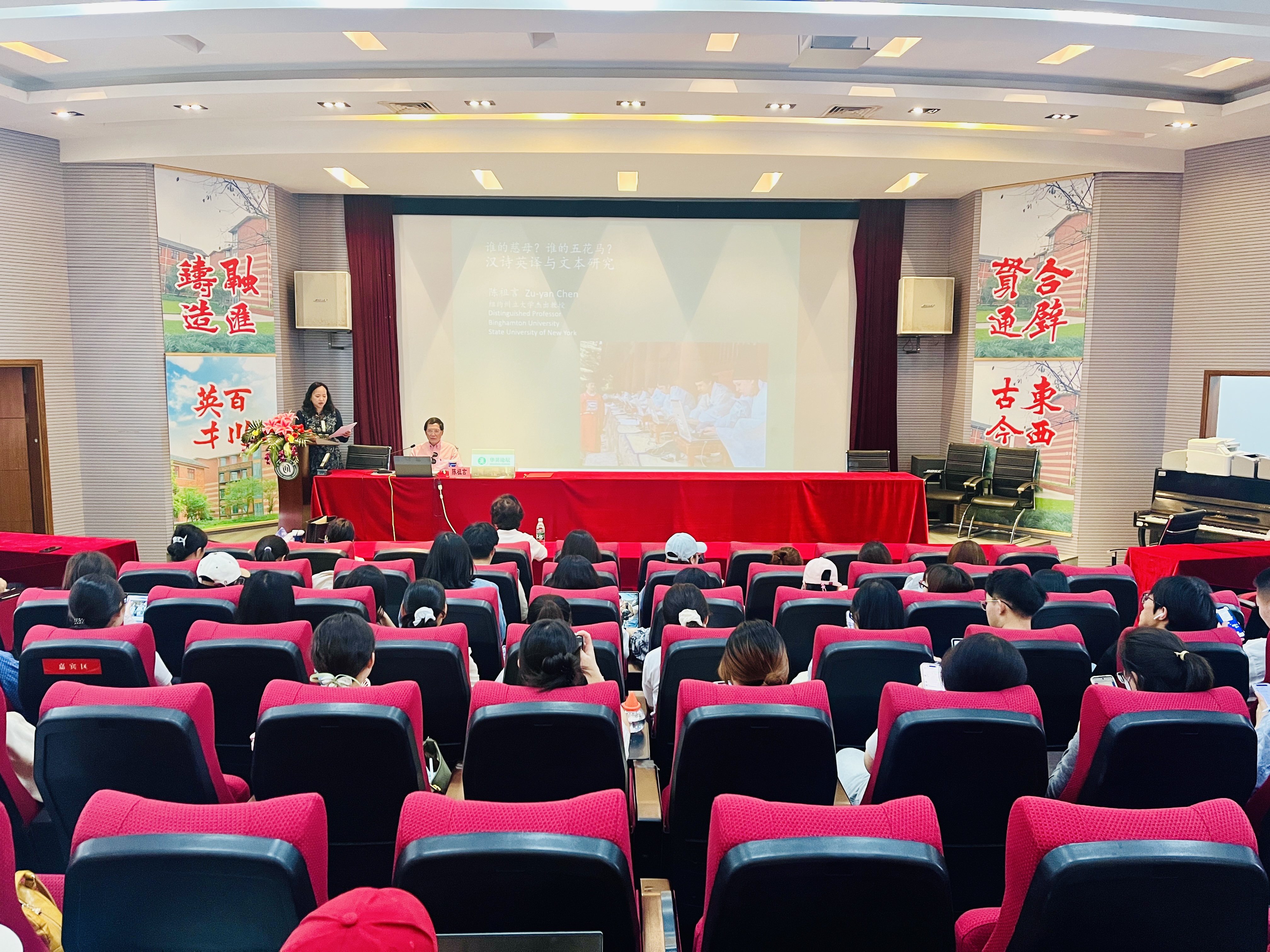 5月30日下午,纽约州立宾汉顿大学中国语言文学教授、清华大学世界文学文化研究院资深研究员陈祖言教授受邀参加外国语学院华英论坛,为学院师生带来题为“谁的慈母?谁的五花马?——汉诗英译与文本研究”的学术讲座,讲座由外国语学院王惠萍副教授主持。