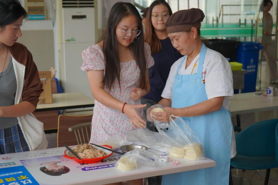 活动现场,同学们纷纷亮出自己的包饺子“绝活”。有的同学手法娴熟,转眼间就包出一个个饱满圆润的饺子;有的同学创意十足,捏出了包子、元宝等造型;有的同学起初略显生疏,在食堂工作人员的指导下,也逐渐掌握了包饺子的技巧。同学们相互配合、分享经验,在面粉与馅料的交融间,不仅学会了一项传统技艺,更在协作中感受到了国庆、中秋佳节的温暖氛围。