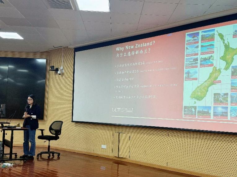 解俊老师为同学们详细介绍了学校与新西兰坎特伯雷大学的合作交流项目。她指出,该项目旨在帮助学生拓宽国际认知,并特别注重培养学生在世界文化与全球议题、沟通与协作、开放与尊重等方面的核心素养。