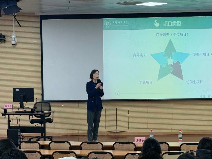 同日下午,法语专业专场宣讲会于奉贤五教114举行。王一辰老师以往届学生为例,重点讲述了他们如何通过赴法留学项目系统提升法国语言与文学素养,并深度感知和了解法国文化。此外,王老师针对各年级学生特点推荐了适配的留学项目,并鼓励同学们积极尝试申请不同类型的院校与专业,探索多元发展路径。